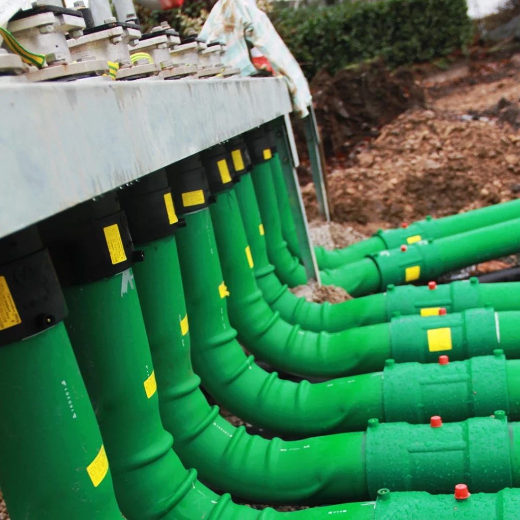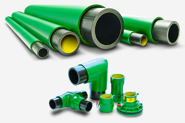 Ces tuyaux à double paroi sont utilisés comme tuyaux de remplissage, de ventilation et d’aspiration et sont disponibles en différents formats. Ils sont soudés entre eux et testés sous pression après l’installation.